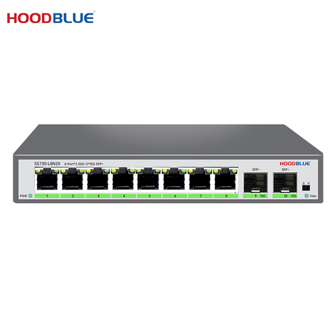 Hoodblue S5730-L8N2X 2.5G/10G Switch de rede Ethernet não gerenciado, 80Gbps Backplane largura de banda Plug-Play,Metal Case, One-Click VLAN